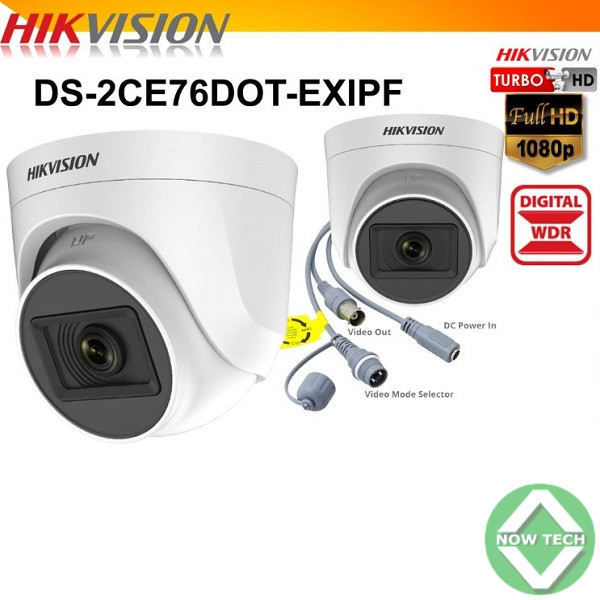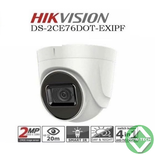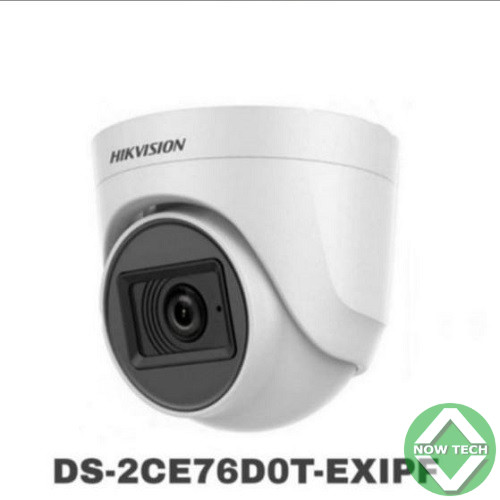 - DS-2CE76D0T-EXIPF : Caméra tourelle (dôme fixe) Hikvision Turbo HD de 2 MP.